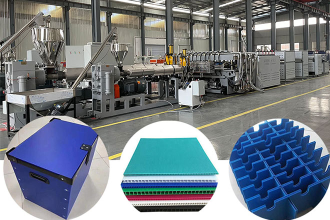 聚丙烯建筑模板機械的生產工藝是什么? 青島塑科機械有限公司聚丙烯建筑模板機(又稱聚丙烯模板生產線、聚丙烯建筑模板機、聚丙烯中空建筑模板生產線)主要由單螺桿擠出機、擠出模具、定型機、冷卻支架、拖拉